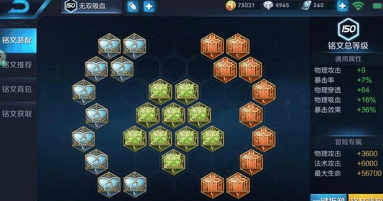 在铭文方面,触手浪余心推荐夺萃鹰眼和无双,只有祸源吸血流才需要用末世,其余打法还是以暴击为主的好。