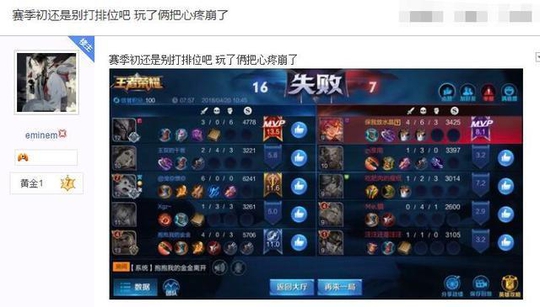 也有玩家表示玩了一天的排位赛连输了9把,都掉成黄金段位了,也有玩家表示自己打了16场排位赛才赢了4场,还以为自己是不是得罪系统了,专门匹配一些坑逼给到他.