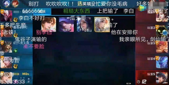 然后更惨的是,据说对面的还有玩家也是上一把的对手,这一把我们的大西瓜确实是拿到了李白这个英雄,因为裴擒虎直接被ban了,想想也是很绝望了。