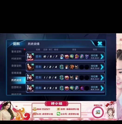 婷小姐光速冲上王者以后,坊间有一些声音说一定又是躺赢抱大腿啊,其实看过直播的同学都知道,这一波连胜,婷小姐可是一直拿MVP哦。