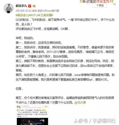 画风突然不对,平常嬉笑怒骂,快意恩仇,王者荣耀解说李九看见后,像吃了火药一般硬刚了一波官博正面!