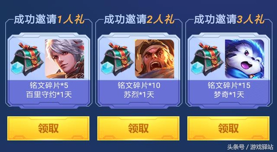 另外车队邀请指定好友后还能免费领取百里守约、苏烈和梦奇体验卡和铭文碎片!