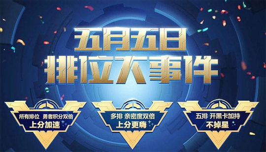 这说的就是排位大事件啦。可以用三句话来概括,“勇者积分双倍,亲密度双倍,五排不掉星”。