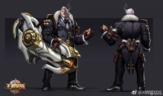 芝加哥教父的设计稿看起来也非常有质感。我们可以看到,黄忠不仅仅换了一套晚礼服装,还叼了一根雪茄。在装备造型上,他的大炮也增加了不少装饰,更显高端。