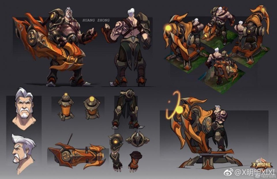 在王者荣耀中,每一个英雄都是经过设计师精心创作而出的。他们在设计英雄时,经过了千锤百炼,连任何一个细节都不会放过。近日,曾经设计过百里兄弟、钟馗、铠等英雄的画师 @X明明XIXI ,在微博中曝光了黄忠的原型图以及部分设计初稿,快来一起看看吧~(以下图片均来自于@X明明XIXI )