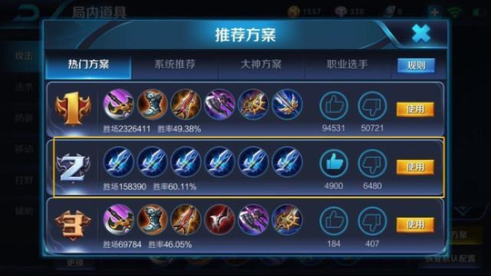 这是哪个大神出的推荐方案,还是在热门方案这里,韩信用这推荐装还胜率达到了60.11%了,胜场还那么多,这系统真的是检测不出来这装备真的是出来搞笑的吗?看点赞量那么高,小鱼也机制的点了下赞了,哈哈哈~