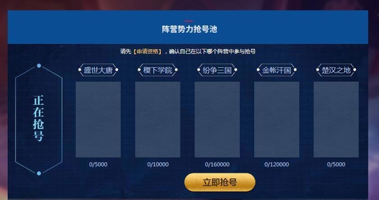 关于申请体验服还是有几个要注意的地方,除了我上面说的尽量准时之外,还有就是尽量选择好一点的网络,如果点击抢号按钮后出现让你等待的提示,不要傻等,直接点击确定之后再抢号,最后抢到号的标志是说明你已加入了XX阵营,另外再说一下这个阵营的问题,这个阵营在抢号之前是不能选择的,大家也看不到,但实际上,官方已经给你默认的一个阵营,有些阵营的号发得比较少,至于你是什么阵营,只有抢到号之后才会出现,抢号之前不要在意阵营,也没法控制的。