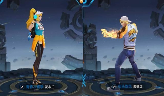 花木兰的青春决赛季和裴擒虎的街头旋风都属于运动系列,他们都带有鸭舌帽,颜色方面也很搭配,其实和花木兰这款皮肤还很配的有夏侯惇的夏季泳装皮肤,只是夏侯惇那款皮肤还可以和钟无艳组个cp所以这次就让裴擒虎和花木兰组个cp吧,不然裴擒虎就成了单身了。
