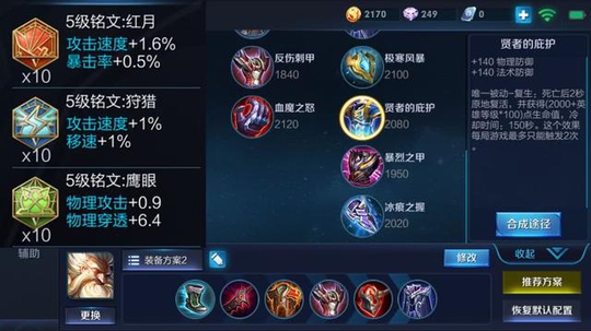 在单人对线上,老夫子只要出了一个末世就很少有敌人能够在单挑上打得过他,毕竟其二技能免伤不是吃素的!所以之后的装备都可以往防御上面靠,最多也就是出一个碎星锤打破敌方的护甲值!而铭文方面则推荐红月+狩猎+鹰眼,开局就增加26%攻击速度,对于老夫子的发育确实有帮助!