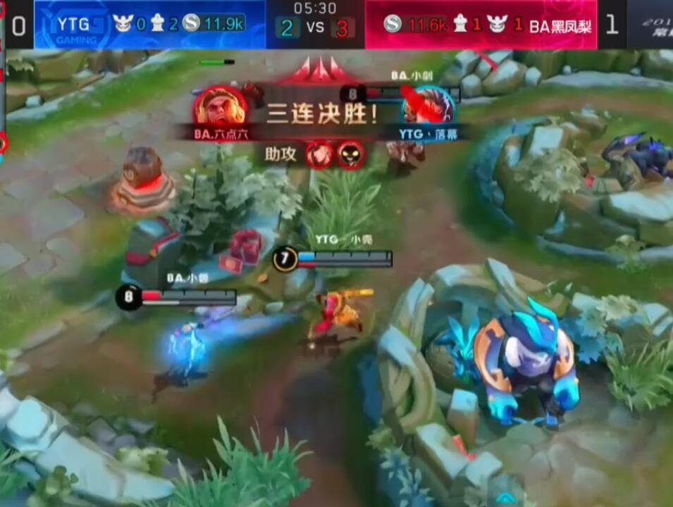 第三局YTG强行入侵了BA黑凤梨的野区,初期发挥还可以,橙汁的干将莫邪拿了一血。但之后BA黑凤梨以其人之道还治其人之身,也入侵了YTG的蓝buff野区,并且击杀了YTG多人,又一次取得了绝对优势,之后就和第二局一样,最后又是BA黑凤梨强上高地。击杀了YTG的三人,最终以3:0的比分赢得了这个系列赛的胜利。
