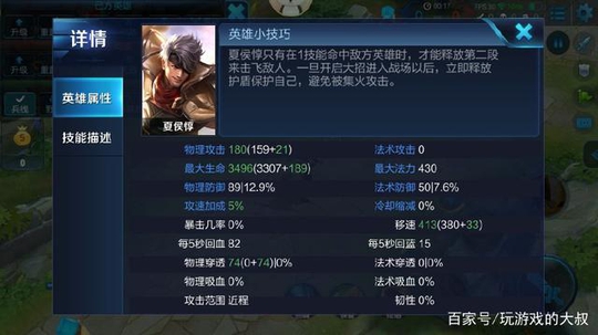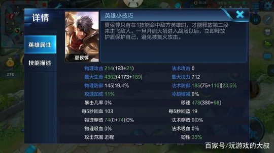 那么这代表是什么意思呢?以下图为例,夏侯惇4级的时候,穿上一个抵抗鞋,拥有185点法术防御,这个防御的减伤比例为:23.5%。
