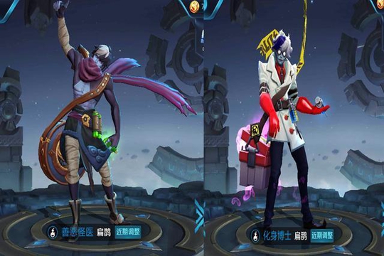 扁鹊的原造型虽然不好看,但是和化身博士这款皮肤对比感觉还好好那么一点点,扁鹊的化身博士这款皮肤确实太丑了点,眼睛还那么大带着红色橡胶手套一种杀马特的感觉,扁鹊的皮肤了还是赛季奖励皮肤最后看。