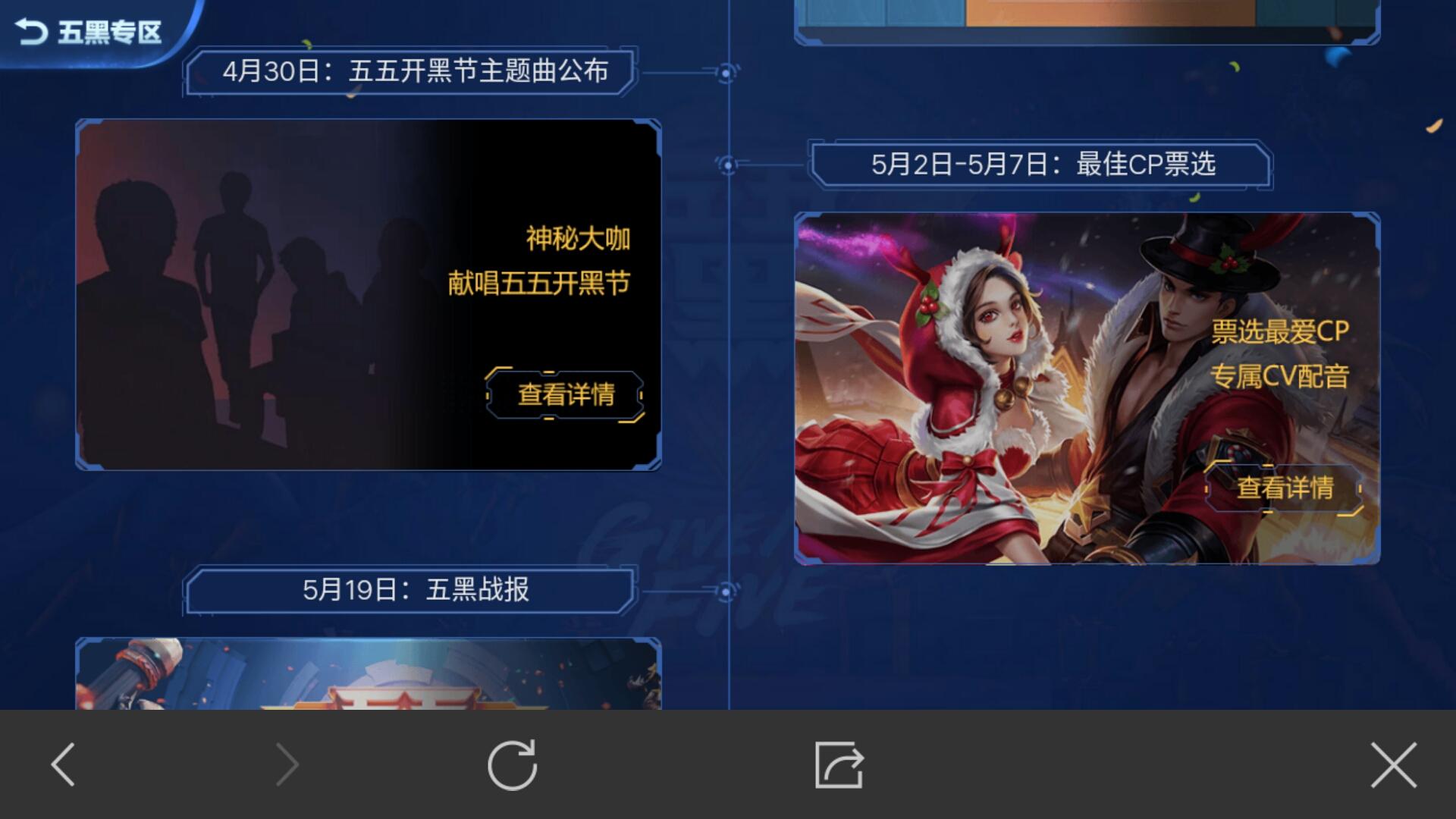 我们从社区点进去就可以看到一个五五开黑节的最全活动宝典。它可以让你知道所有五五开黑节的最新消息,这样大家都不会错过任何福利了。