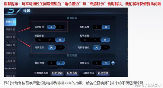 天美表示问题已经定位,但解决需要时间。玩家不想受到影响的话,可以将“角色描边”和“高清显示”关掉。
