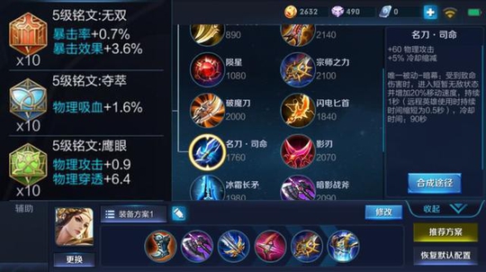 她其实有两种打法的,一种是走百穿路线,另一种就是笔者这次所要说的暴击穿透流,铭文方面佩戴无双+夺萃+鹰眼,这样在装备上就没必要再补泣血之刃这类了!而且由于虞姬在前中期破军是必须要做出来的,因此也可以选择将宗师之力提前,而破晓放到后面补,这样有了前者其在中期就拥有很高的伤害了!