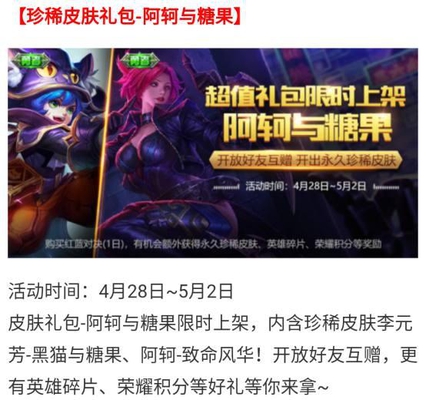但是这次获得两款皮肤的渠道不再是限时秒杀,而时通过皮肤礼包,具体售价应该也是60点券一个,里面包含除了皮肤之外还有各种碎片,具体有什么就看玩家能抽到什么,这也可能是两款皮肤的最后一次返厂,具体活动时间是从4.28至5.2号,所以想到的小伙伴们赶紧抓住这次机会不要在错过了!