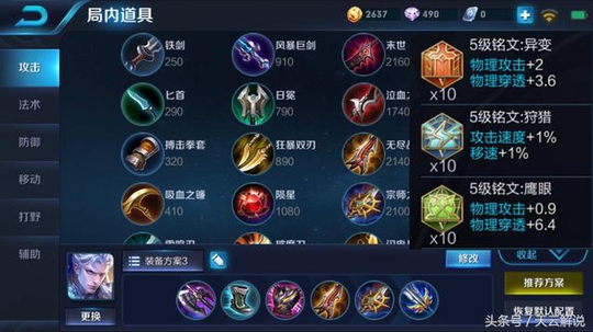 作为一个战士类英雄,笔者还是推荐走上单路线,打野位还是没有裴擒虎,百里玄策这些英雄强势!出装则是上面这一套,走暴击路线,当然如果是处于逆风,后期也可以将破军换成魔女这类防御装备!铭文推荐异变+狩猎+鹰眼!