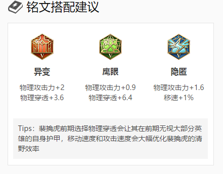 裴擒虎的常规定位是战士/刺客,擅长用自己双形态的变身能力游离于战场,寻找机会击垮对手。