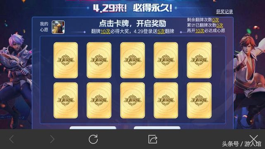 在选择之后就可以看到。这个活动是一个翻牌的活动,每次翻牌都可能会得到你的心愿,但是前九个大家都知道的几率不是很大,一般来说肯定要放第十次才能得到,那么怎样才能获得十次翻牌机会了。我们把这个图往下滑一点。