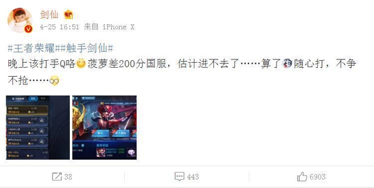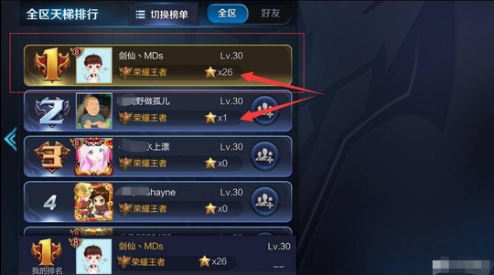 王者荣耀全区第一,甩开第二名二十五颗星,主播剑仙真是厉害!