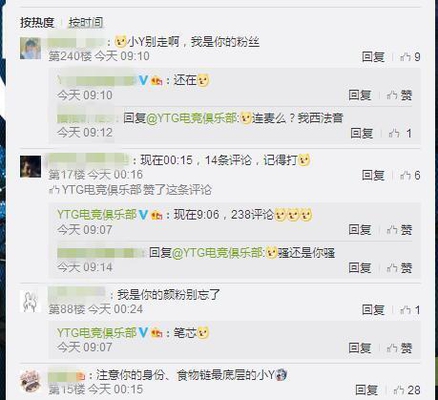 昨天小Y发了一个微博,要200条评论。这不大家一起助力,没一会就达到了。说明很多粉丝还是对YTG充满了信心的,虽然他们的战绩看上去不是很好。但是队员的心态好像都没有受到太大的影响,今天的这场比赛。肯定也会特别精彩。