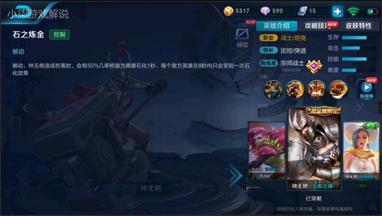 钟无艳定位是一个坦克战士,有位移有硬控的女英雄,她在上单位置表现的并不明显,所以不适合单带,她最大的被50%几率的石化控制,即使在经济差上许多的情况下仍然可以给团队带来一定的优势,当然如果经济相差太大那就不要说了,谁去都是一样。