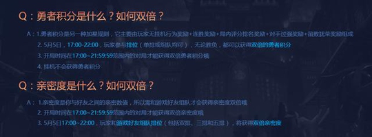 除了失败不掉星之外,5月5日当天参加排位,还会获得双倍的勇者积分和亲密度!想要上分的召唤师们,千万不要错过!