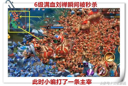 结果,一个七级的刘禅注意是全肉装哦。虽然级别低,但是已经六神装了。只是刚刚接触免疫伤害的一瞬间,六神装刘禅就直接被KO了。即便是一个六神装的刺客或者射手也不可能瞬间秒杀刘禅吧,这小兵的威力可见一斑。