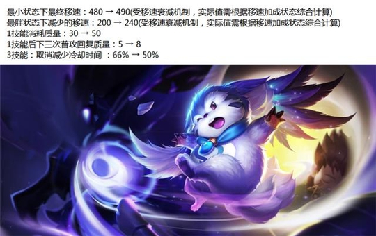 梦奇削弱:生存能力降低,1技能将消耗更多质量,肥胖状态下移速降低,大招取消后,返还的CD减少。