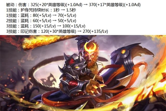 孙悟空增强:前期伤害再次提高,技能耗蓝量降低四分之一。