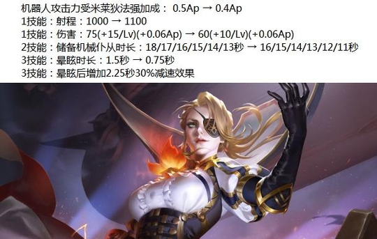 米莱狄削弱:大招控制时间减半,整体输出伤害降低,储存机器人的时间减少2秒。