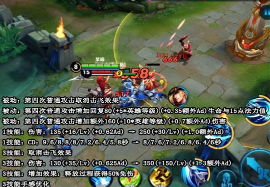 赵云加强基础生命值,并且等级提高增加,二三技能降低蓝耗,消耗能力大幅度提升,输出能力没有提升。