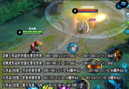 裴擒虎前期能力大幅度降低,基础伤害下降,但是后期实力不变,切换双形态后的攻击强化降低,人形态的二技能全面降低,护盾、伤害、攻速三项加成前期都削弱40%。