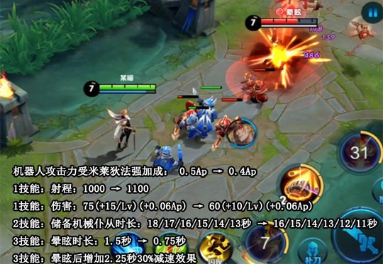 米莱狄技能机制再次修改,削弱机器人攻击力,提高一技能射程,但是略微削弱伤害。二技能降低两秒冷却时间,大招降低硬控时间,弥补为较长时间的减速效果。总体而言还是略微削弱,但是影响不是太大。