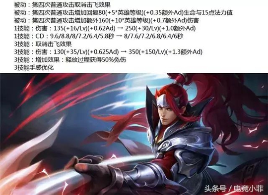 赵云此次增加了基础生命和耗蓝降低,估计是为了增加其生命程度,防止被本赛季射手gank 的节奏。还有典韦的加强,基础移速:370 → 390,2技能:增加移速及吸血的持续时长:2秒 → 3秒,2技能:吸血比例:30% → 50%。
