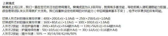 点评分析:本身裴擒虎可以说是前期的英雄,前期的的裴擒虎要是没有拉开经济差距和优势,到了中后期基本可以说是没什么作用。现在很多玩裴擒虎的人更愿意把他当作一个射手来玩。但是现在人形状态的伤害降低,攻速也被限制,所以可以说是大削了。