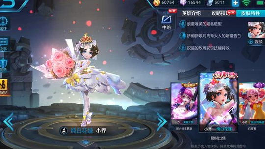 小乔的这款皮肤是情人节限定皮肤,特效台词方面都不错,收藏价值也是很高的,毕竟穿上婚纱的女英雄就2个。