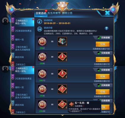 这次活动时间为: 4月29日——5月1日 。只有短短两天时间呦!玩家可以根据自己的积分多少选择兑换适合自己的奖励,骚狐君把攒下来的3001个钻石全部用于铭文抽取,最终换取了接近300积分,直接冲着“耀”去的,下面是兑换结果: