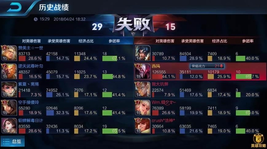 虽然有时会翻车,但是干将莫邪打出的伤害还是非常恐怖的,能够达到44.1%!总而言之,无论队友如何崩掉,只要干将莫邪稳住心态,必要时甚至可以屏蔽队友的消极语言,默默发育,总能在团战中一次找到完美的时机秒杀掉敌方后排,完成翻盘!希望大家在新的赛季能够早日上王者。