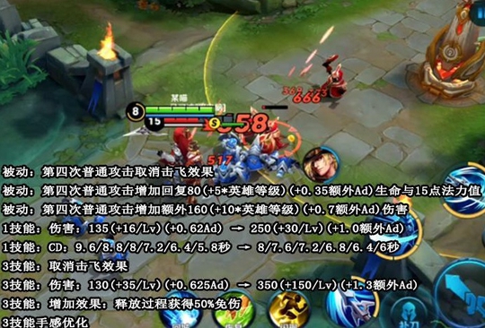 韩信移除被动和大招的击飞控制能力,补偿了伤害加强以及回血能力,还有首次出现的攻击回蓝效果,续航更强,大招附带霸体效果。技能加成同样改为额外的ad加成,总体实力也是略有加强。