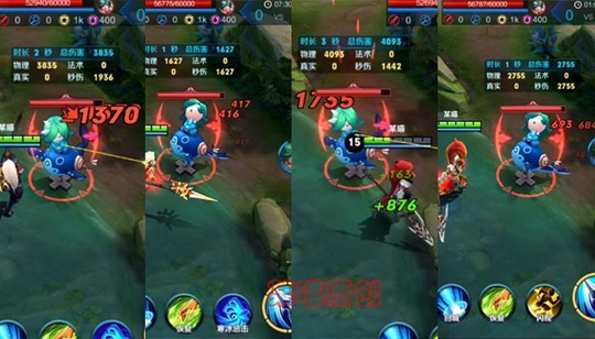 然后是满级神装下使用第二套推荐装备,伤害测试:三个技能轮流释放。伤害的差距在一千以上,后期的伤害值明显拉大,大招伤害单次差距五十。所以李白的调整总体上是一个加强,前期的单挑因为控制移除可能会弱势些,但是大招解锁更快,技能冷却时间短,适当上手后实力相对增强。