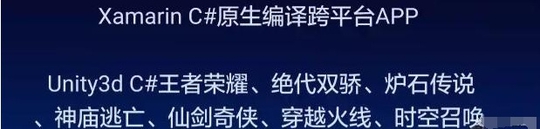 腾讯、网易的绝大部分知名游戏(王者荣耀、绝代双骄、炉石传说、神庙逃亡、仙剑奇侠、穿越火线、时空召唤、全民无双……)都是用Unity3d(.NET C#)开发的,技术底层基于Xamarin公司发明的Mono原生编译跨平台技术,微软2016年2月花5亿美元收购了Xamarin公司,并将Xamarin开源、免费,成为原生编译跨平台App开发的解决方案 ,新一代Xamarin黑科技,可以将.NET C#代码原生编译成Jar包供java原生调用,也可以编译成obj-c、swift、C++类库,供各种目标平台传统代码原生调用。