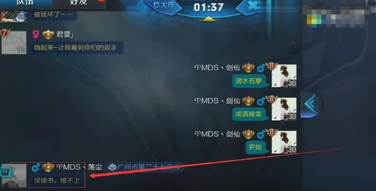 在这一把游戏还在匹配的时候,我们的大西瓜发送出去了一个成语,滴水穿石。然而这一波并没有人回复大西瓜,感觉气氛还是有一点尴尬。为了缓解这样的尴尬的气氛,我们的大西瓜就是直接来了一句,说是要玩成语接龙。