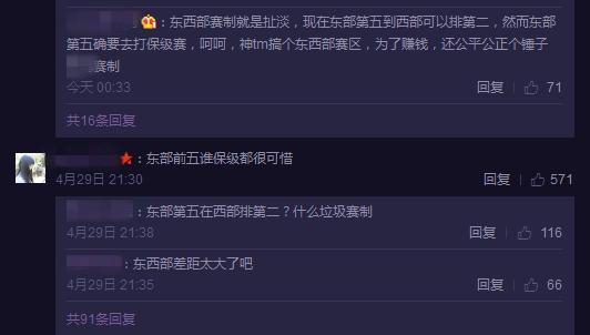 很多玩家也认为这次的东西部分区还是非常的不公平。东部赛区基本上都是强队,而西部相对来说就比较弱了。这样的话对冠军争夺战和保级战都有一定的影响,我们打个比方,现在的EDGM是东部的第五名。这样的战绩只能沦落到参加保级赛,如果他在西部的话,就可以直接参加后面的季后赛,甚至去争夺冠军了。