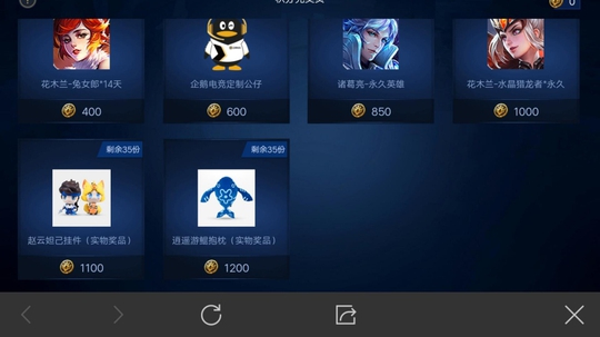 而除了这些虚拟的道具以外,还有一些实物,比如上面的企鹅定制公仔以及赵云妲己挂件和庄周的一个抱枕。这个的数量就要多一些,一共有35份。所以说基本上排名前列的都能得到了。