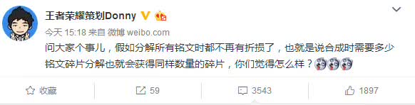 今天看策划发微博称,假如铭文分解无折损怎么样,问问小伙伴们的意见。