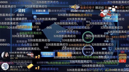 而骚白最引人注意的,莫过于他的排位胜率高的离谱,离谱到什么程度呢?就是到目前为止,骚白的排位之旅已经达到了恐怖的326连胜,而且,这个数字还在不断的增加中。成功当时,弹幕狂刷这九个字:326连胜圆满成功!