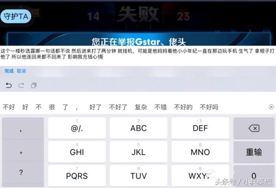 耀神气急之下怒书百字向天美举报:“他妈妈看他小小年纪,一直在玩手机,于是生气了拿棍子打他!他就不回来了,影响我充值的心情!”