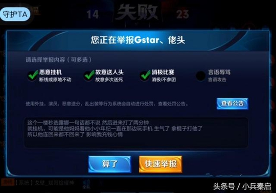 网友强烈建议天美继续把举报系统完善,继续加大对演员的惩罚,给广大普通玩家一个良好的游戏体验!