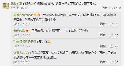 而面对2派讨论激烈的玩家,王者荣耀策划Donny也做出了回应。包括说反对的玩家,想要追回分解铭文已损失的部分,直接表示不好操作。